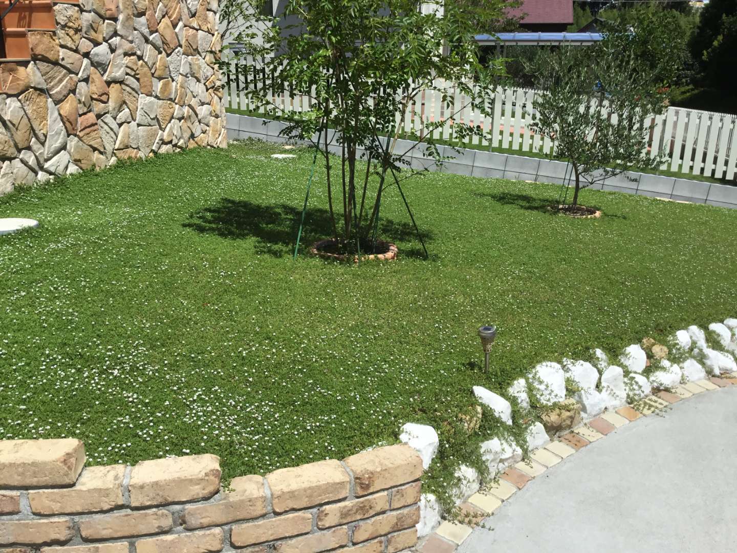 芝生よりは高いけれど手入れの簡単さ・出来栄え 見映え・自然観いっぱいの雰囲気に加え、ネット販売のみで自分で植えることができ、職人の手間・費用など必要としない。