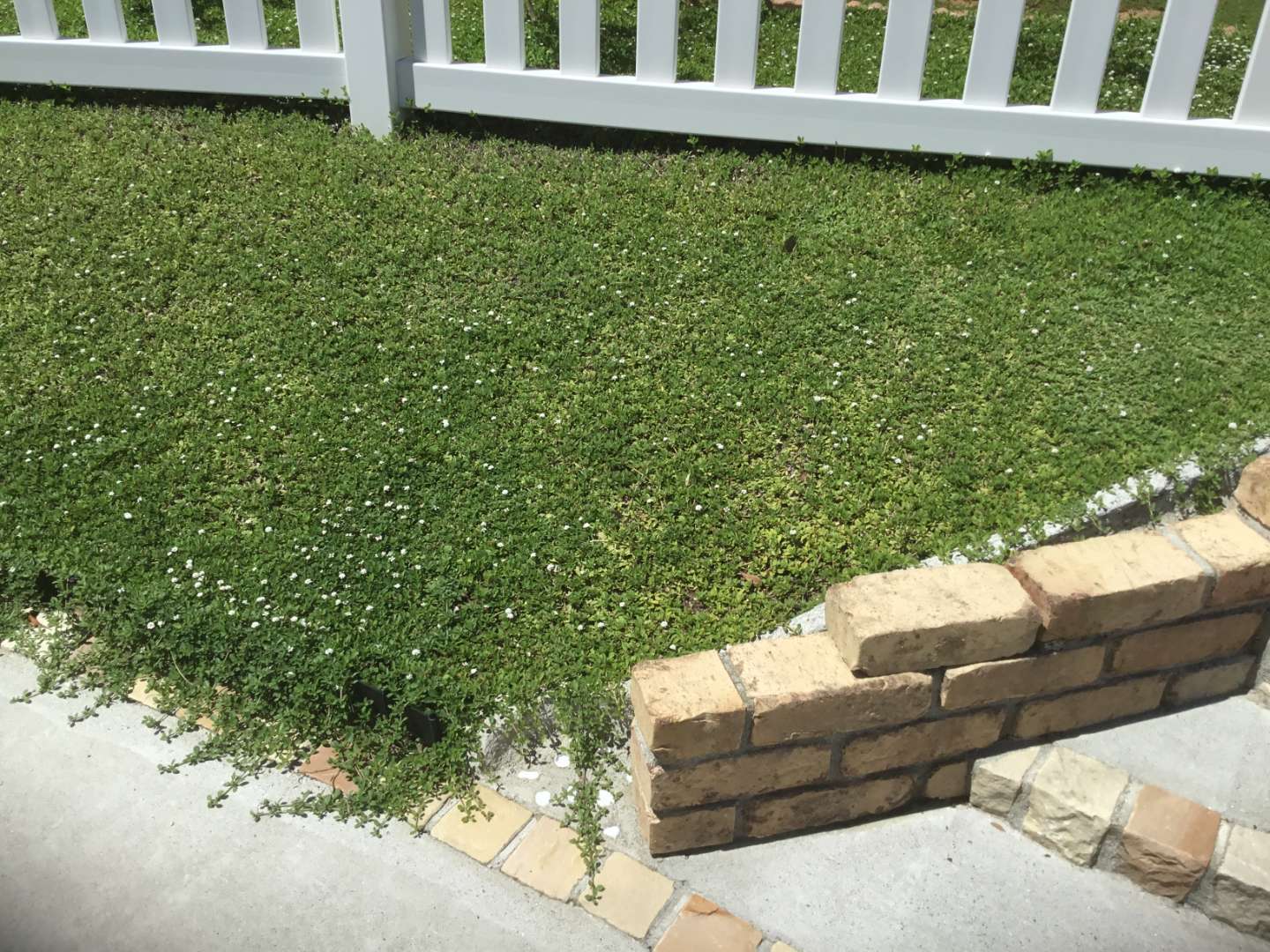 ほふく性がよく日当たりがいいところであれば冬でも枯れず緑を保ち、雑草もやはり出てくるけれど芝生に比べてはるかに少ない 一面に緑のじゅうたんを敷き埋めた様子は自然そのもの。