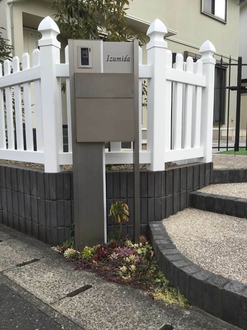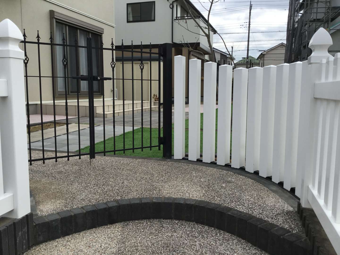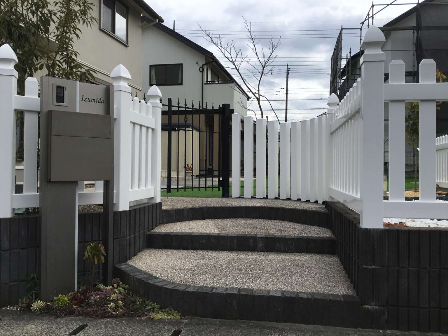 バイナルフェンスは当然、直線部分に設置しますが、 このように曲線をつくる場合、バイナル柱を立てて表現します。 高さも自由になりますから、段々にしたり思い思いに設置できます。