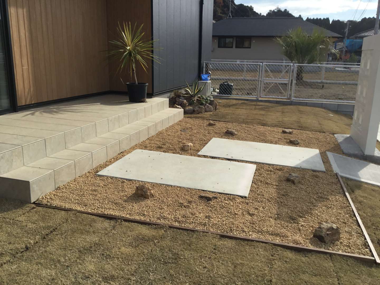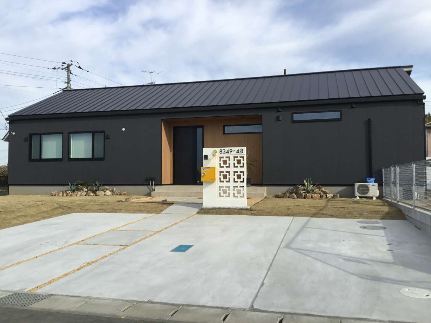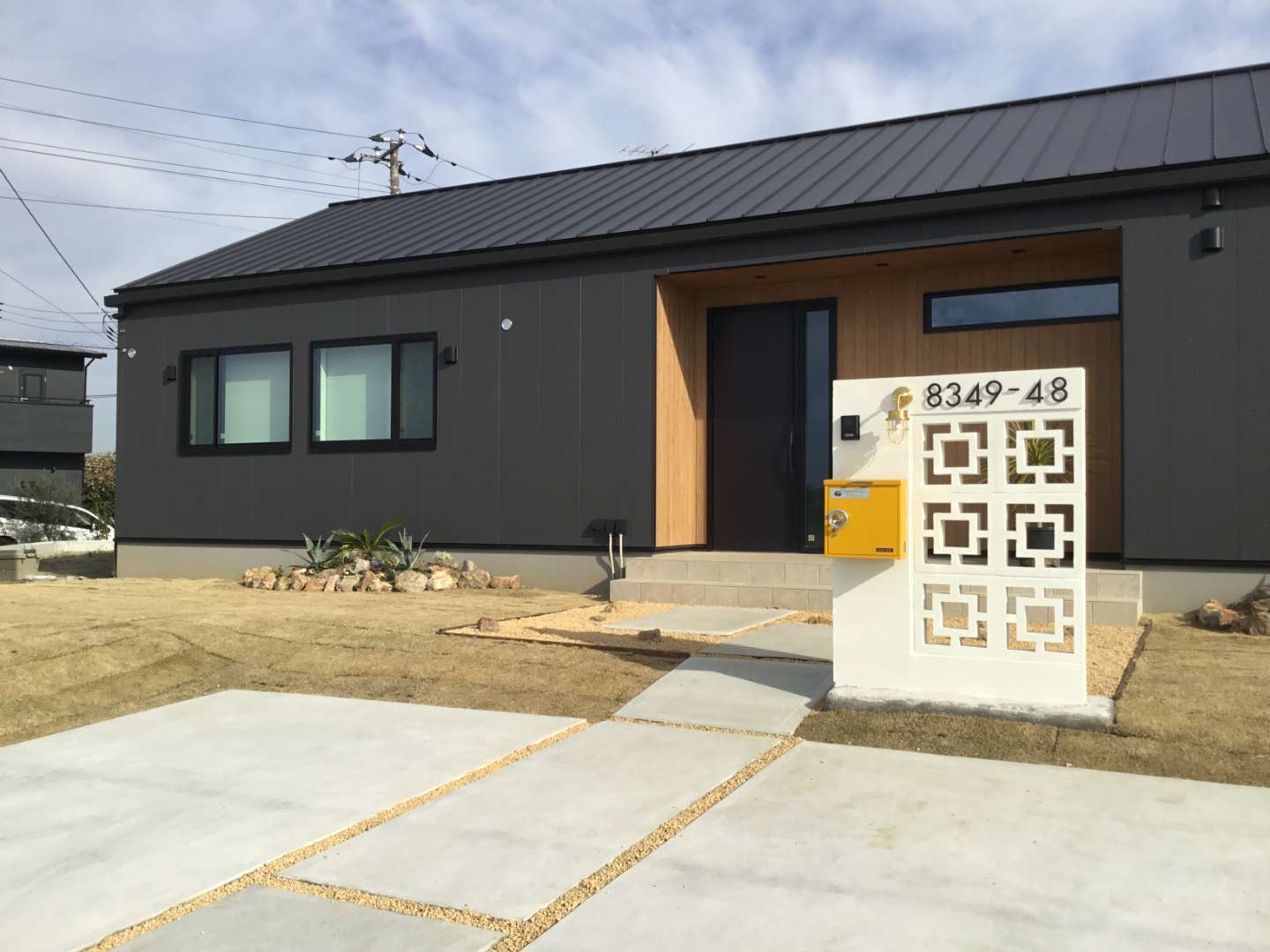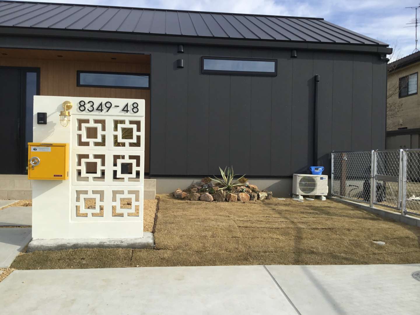 シンプルでかっこよく・・建築途中の黒いガルバリウム外壁を見たときもうアメリカンフェンスと花ブロックとドライガーデンの姿が目に浮かんできました。