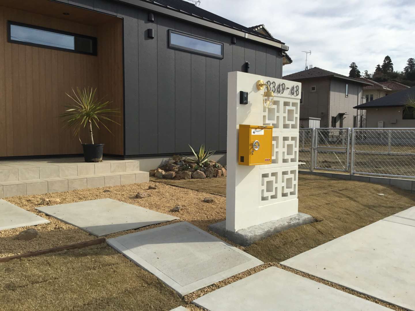 シンプルでかっこよく アメリカンフェンスと花ブロックの新築外構 一宮町
